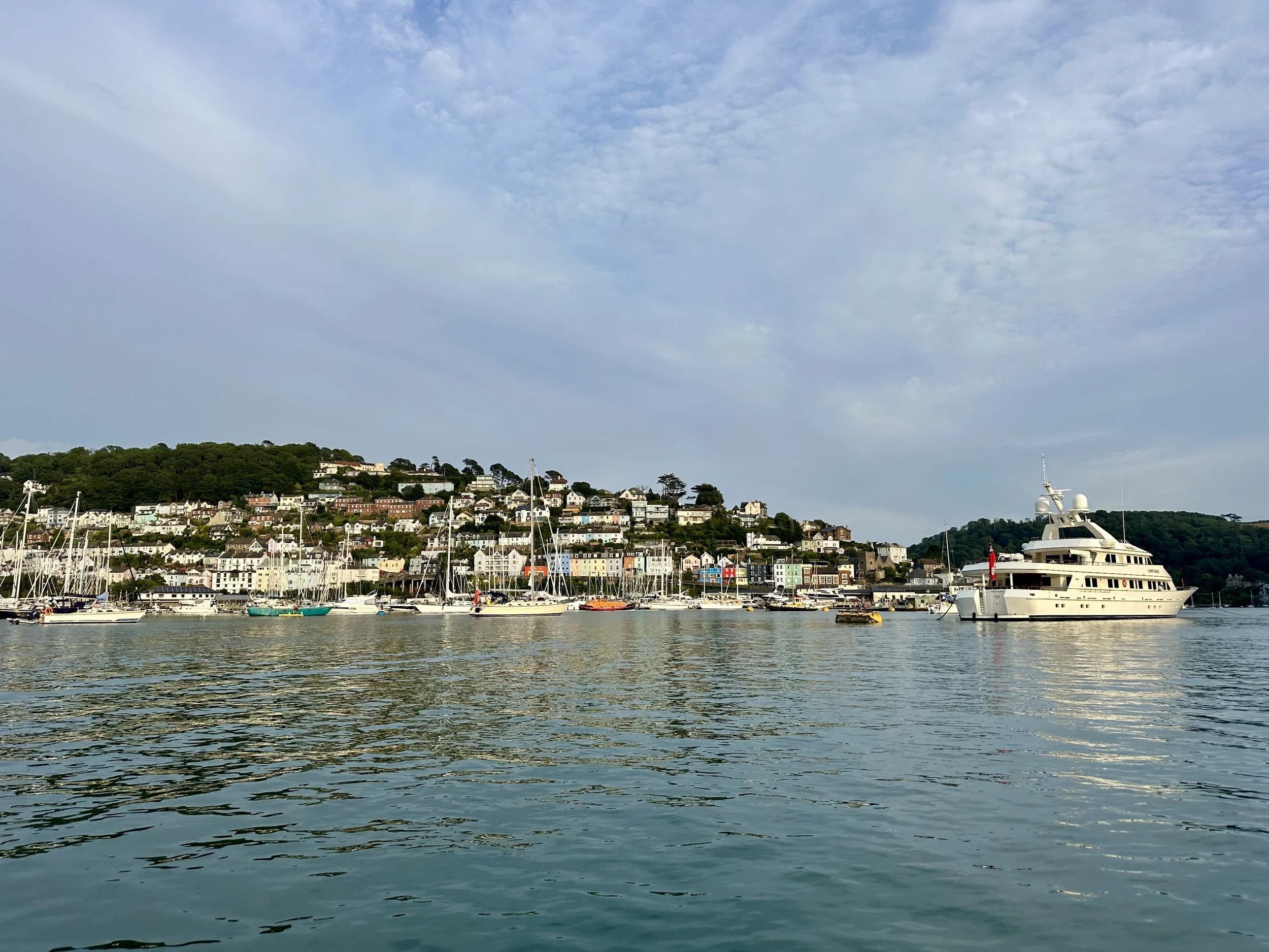Dolphins jumping around the bow as we approached Shag Stone rock and the entrance to Dartmouth Harbour. I always love entering Dartmouth. The way the town opens up once past the forts that guard the entrance can't help but take the mind back to the great days of British naval supremacy at the start of the 19th century. Now at anchor in my favourite spot opposite the historic town quay.